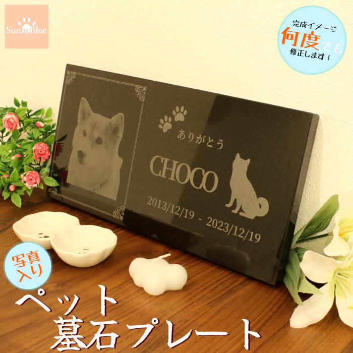 SunnyBlue ペット墓石 プレート 写真入り 天然黒御影石 埋葬 墓標 メモリアル 御影石 ペットのお墓 ペットの墓 おはか ぼせき 墓地 位牌 犬 猫 小動物 お墓